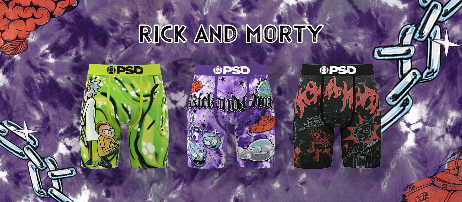 RICK AND MORTY- 平口四角褲-萌萌宇宙-紫色