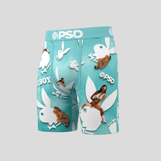 PLAYBOY- 平口四角褲-性感女郎-藍色