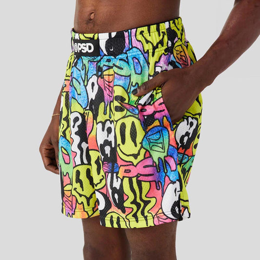 RECREATION - Athletic Shorts - Stacked Smiley Faces - Yellow
