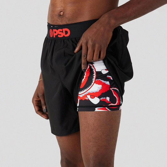 WARFACE - Two-Piece Sports Shorts - Fragment Warrior Face - Black (Inner layer is a drawstring)
