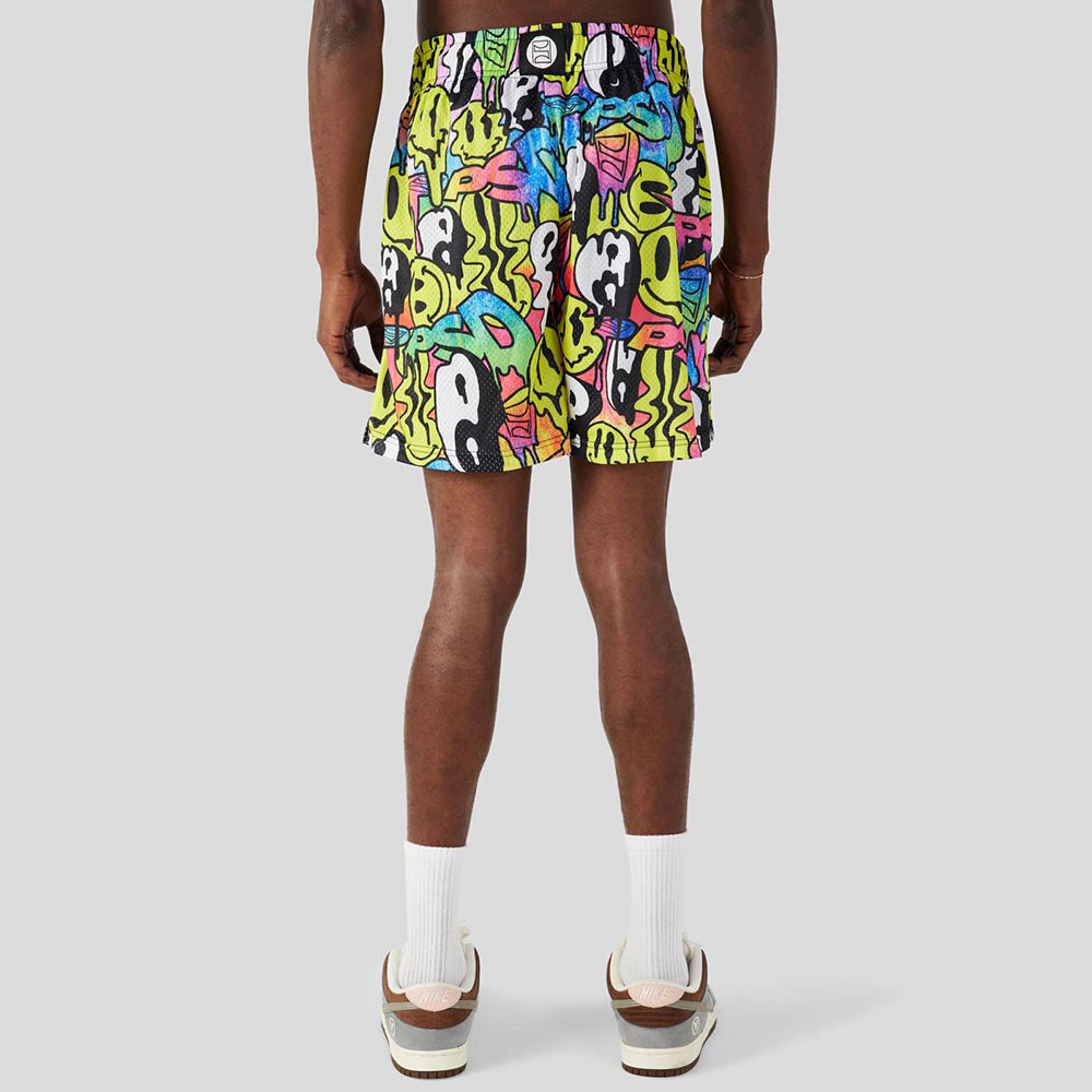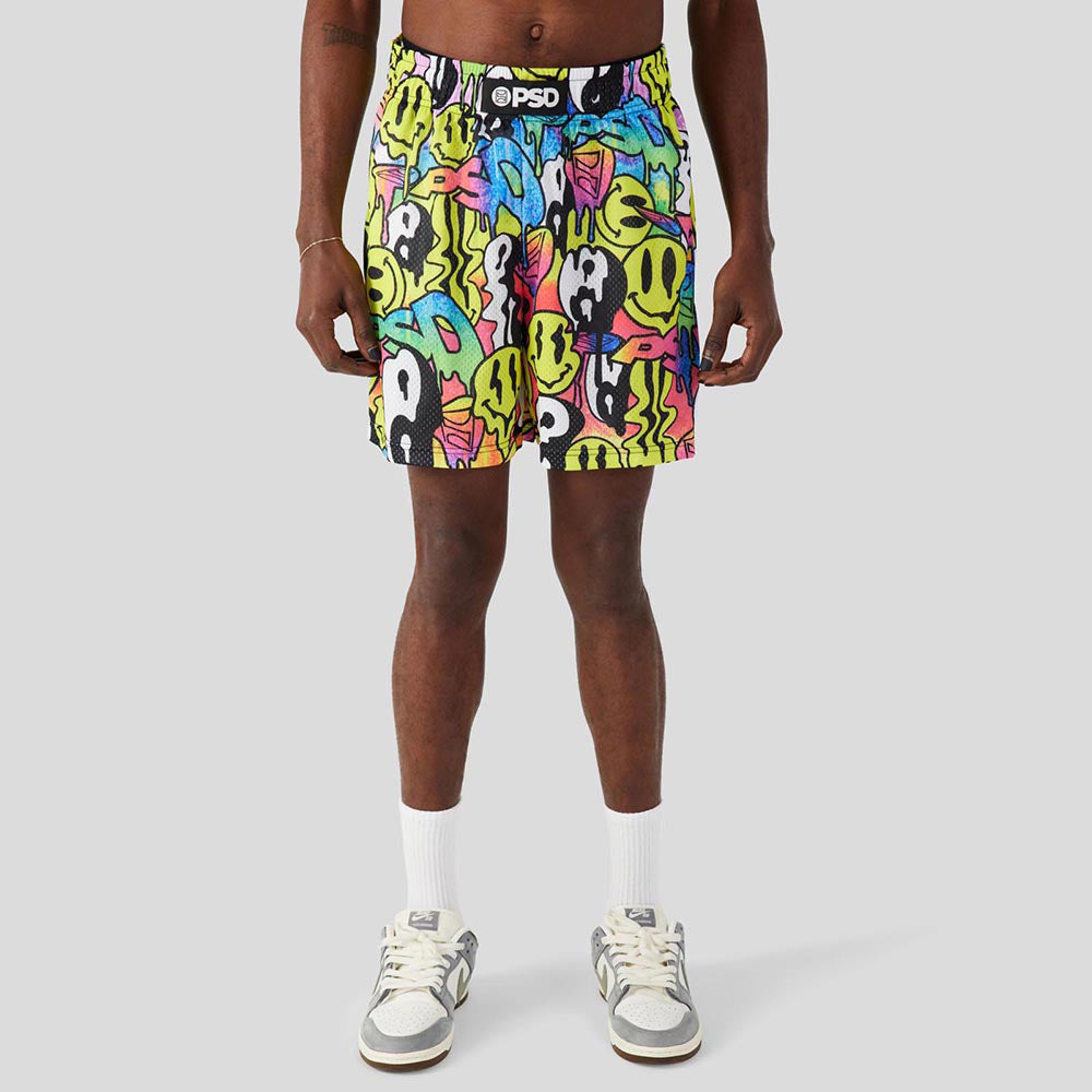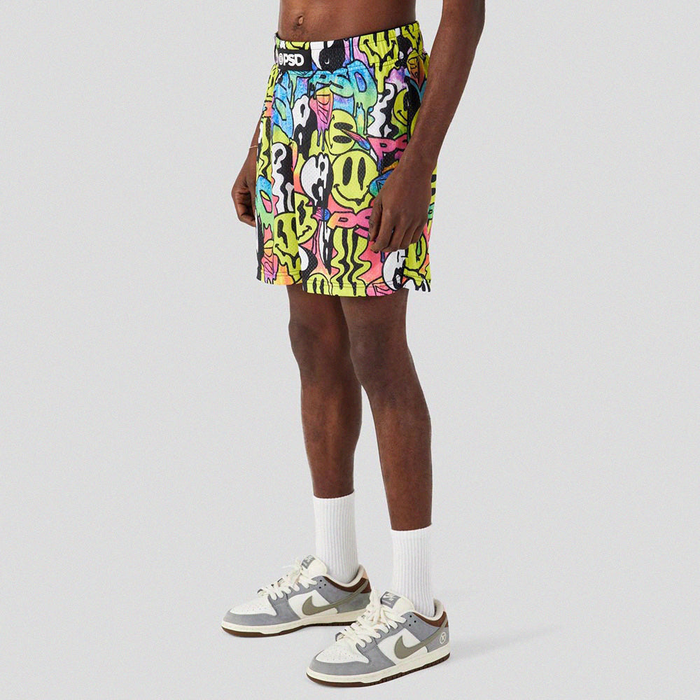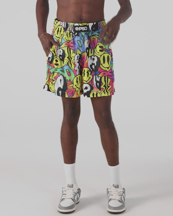 RECREATION - Athletic Shorts - Stacked Smiley Faces - Yellow