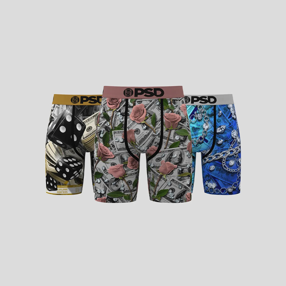 3件組- 平口四角褲-金錢與玫瑰-粉色