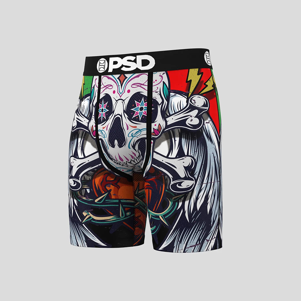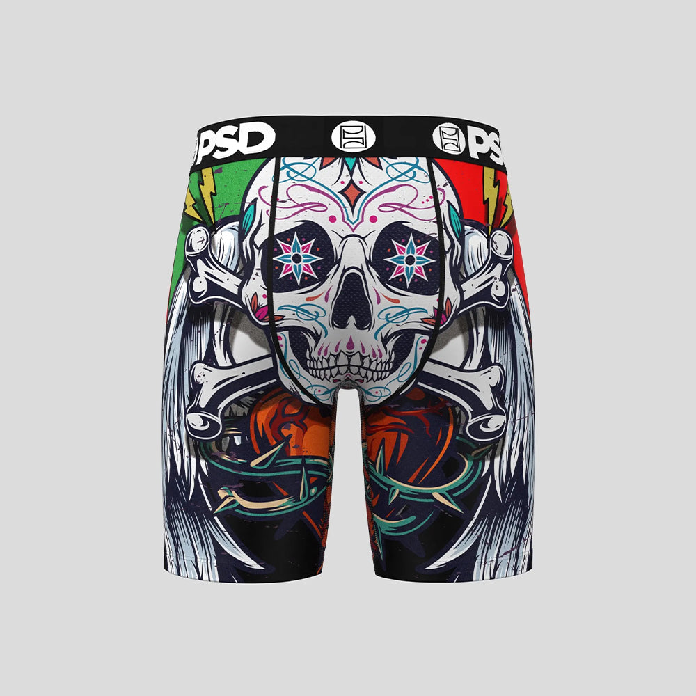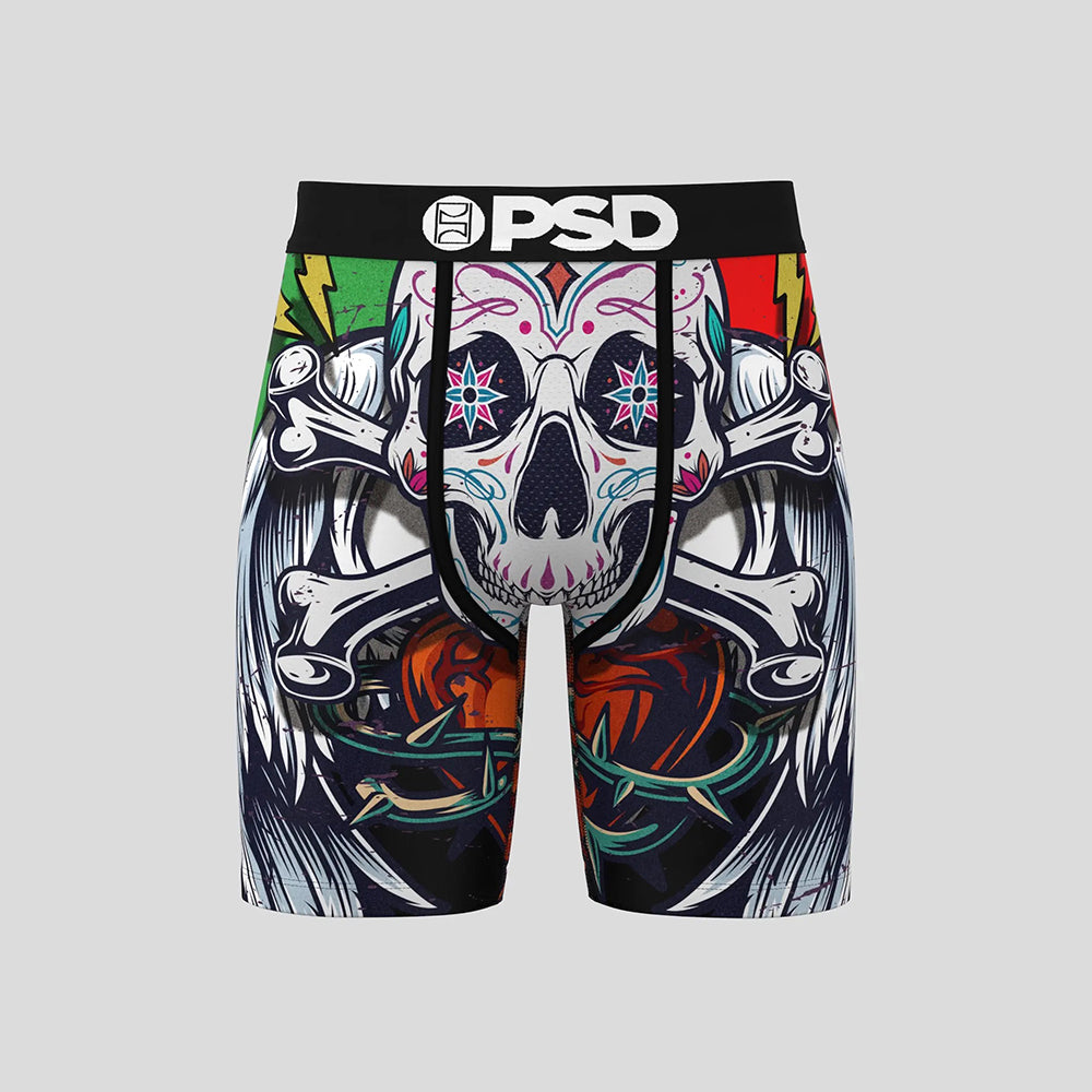 GRUNGE- 平口四角褲-爆裂骷顱頭-黑色