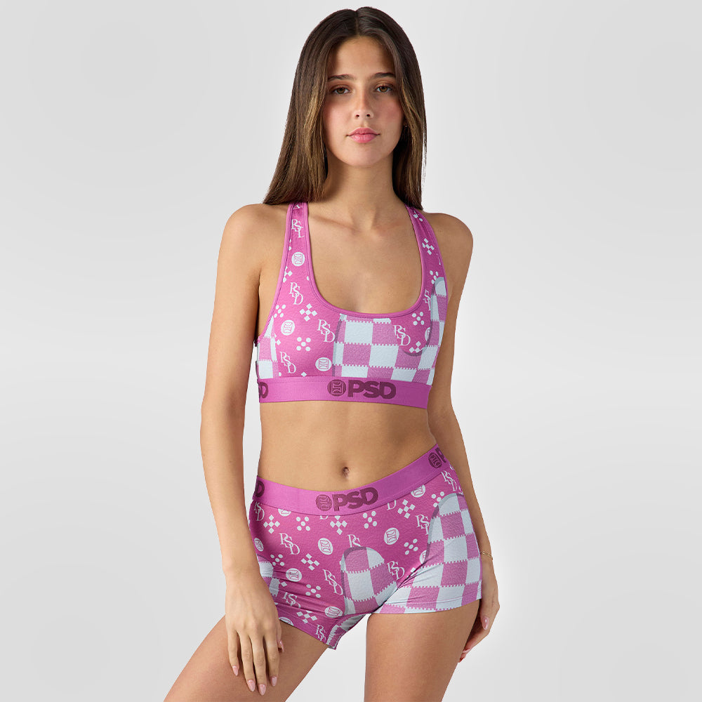 LUXURY- 短版平口褲-格紋情迷-粉色