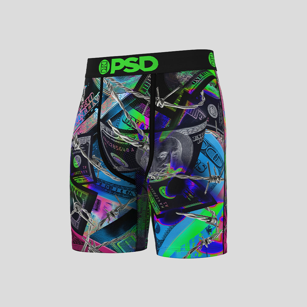 MONEY- 平口四角褲-霓虹班哲明-黑色