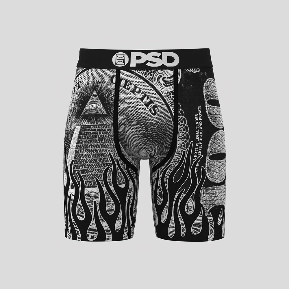 MONEY- 平口四角褲-美鈔火焰-黑色