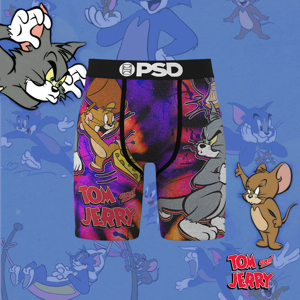 TOM AND JERRY- 平口四角褲-湯姆貓與傑利鼠-黑色